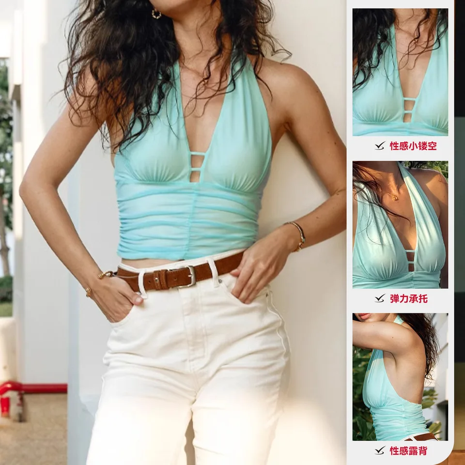 A-Line Sleeveless Pleated Solid Modern Color Halter-Neck Maxi Dresses