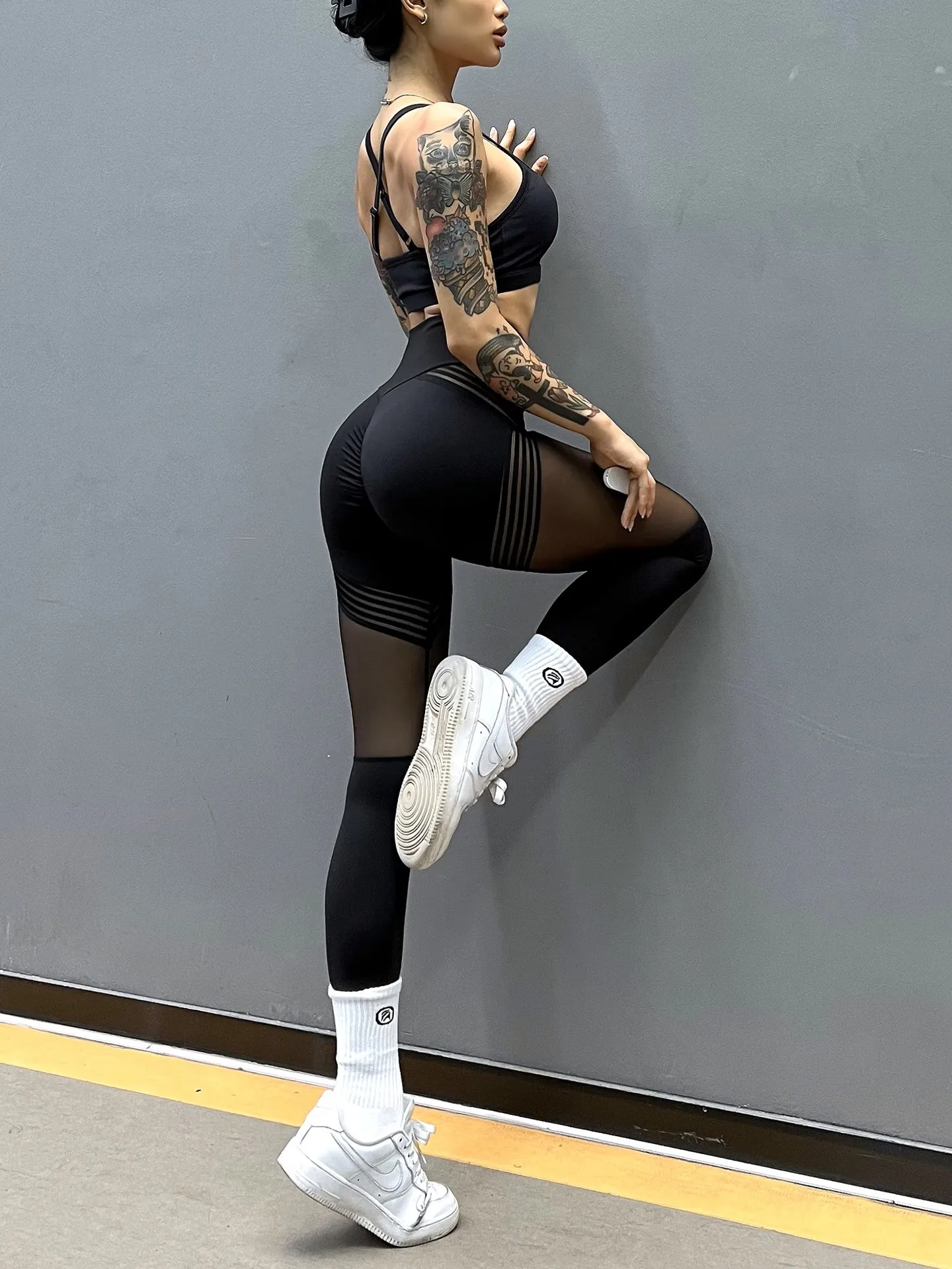 Elevate your workout wardrobe with our Sexy Mesh Bra and High Waist Lace Panel Leggings Set! This stunning fitness outfit is designed to enhance your natural curves and provide ultimate comfort during your workouts. The seamless mesh bra offers breathability and support, while the high-waist leggings with lace panels add a touch of elegance and sexiness. Made from stretchy, quick-dry fabric, this set keeps you cool and comfortable even during intense sessions. Perfect for yoga, gym training, running, and everyday wear.
