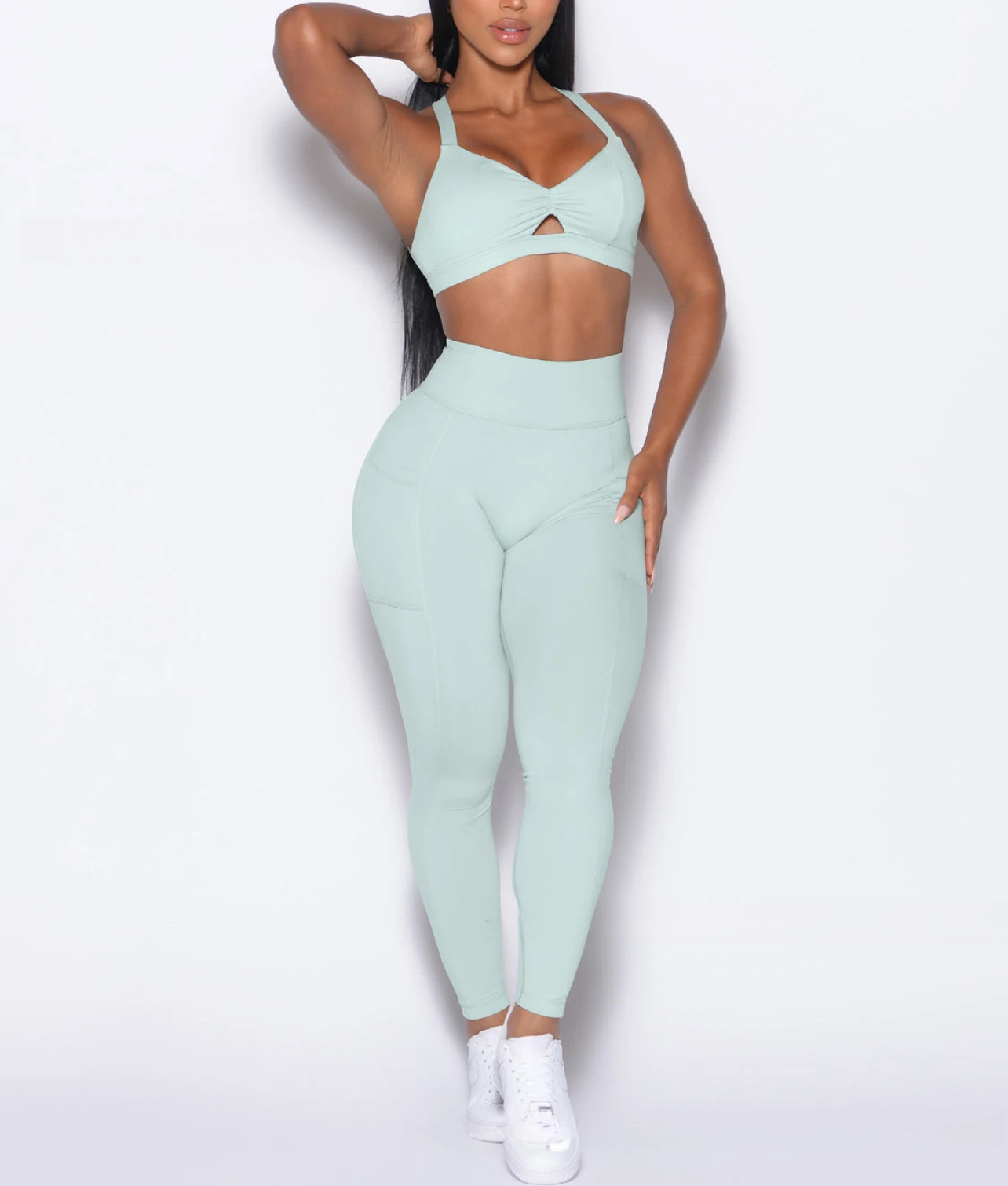 • High-Waist Peach Butt Leggings & Adjustable Strap Sports Bra Set - Women's Fitness, Yoga & Workout Outfit