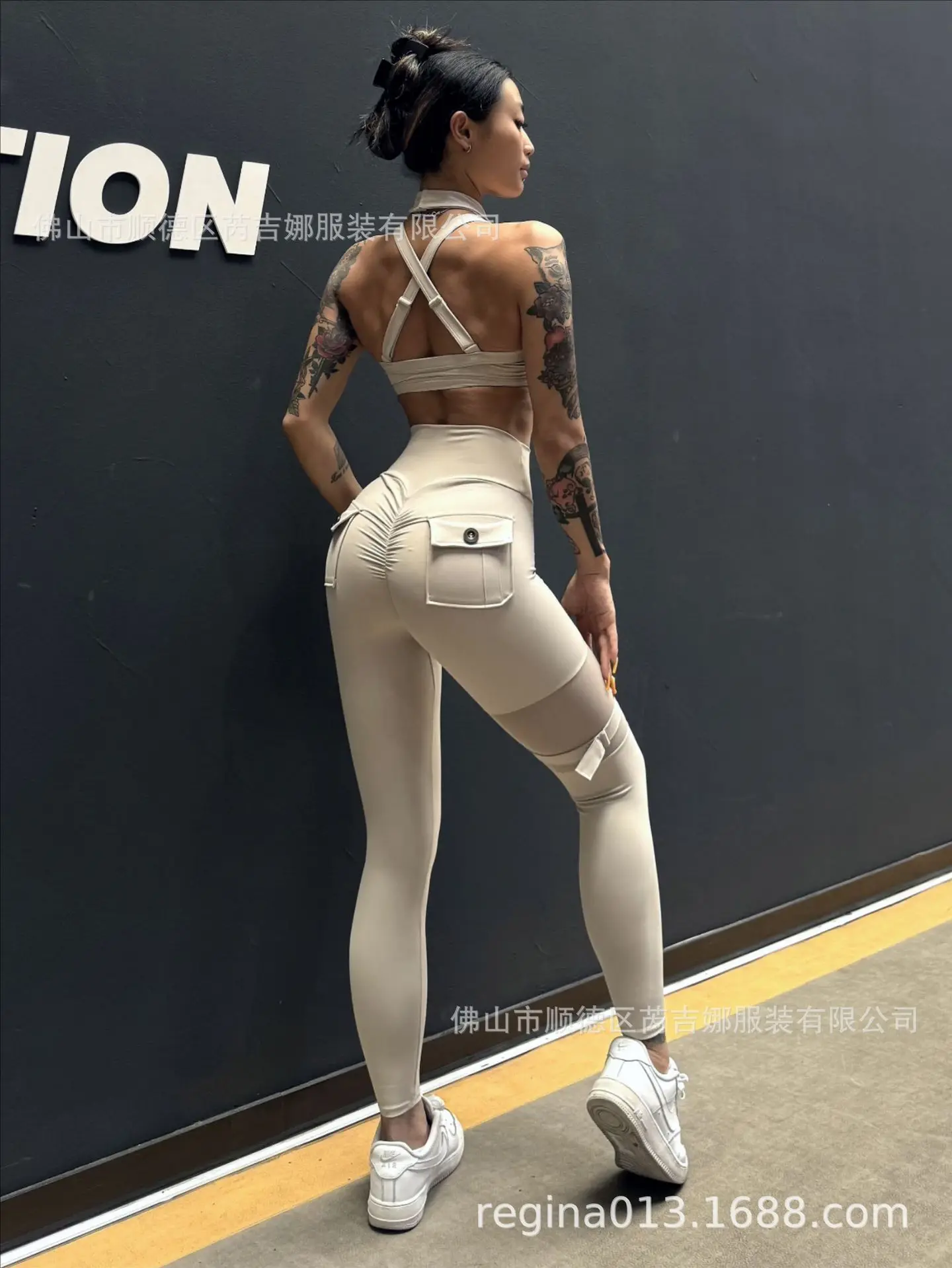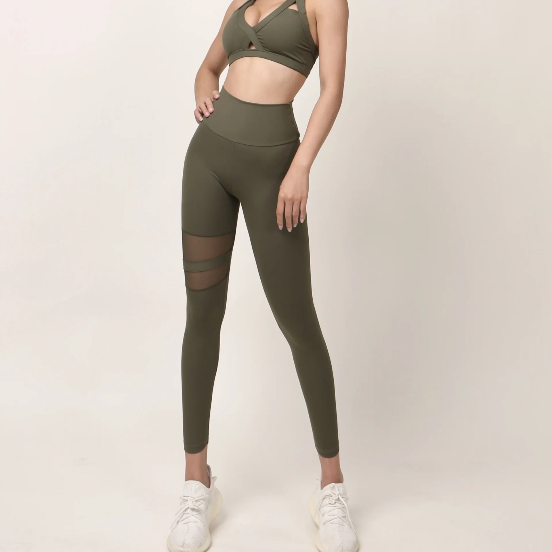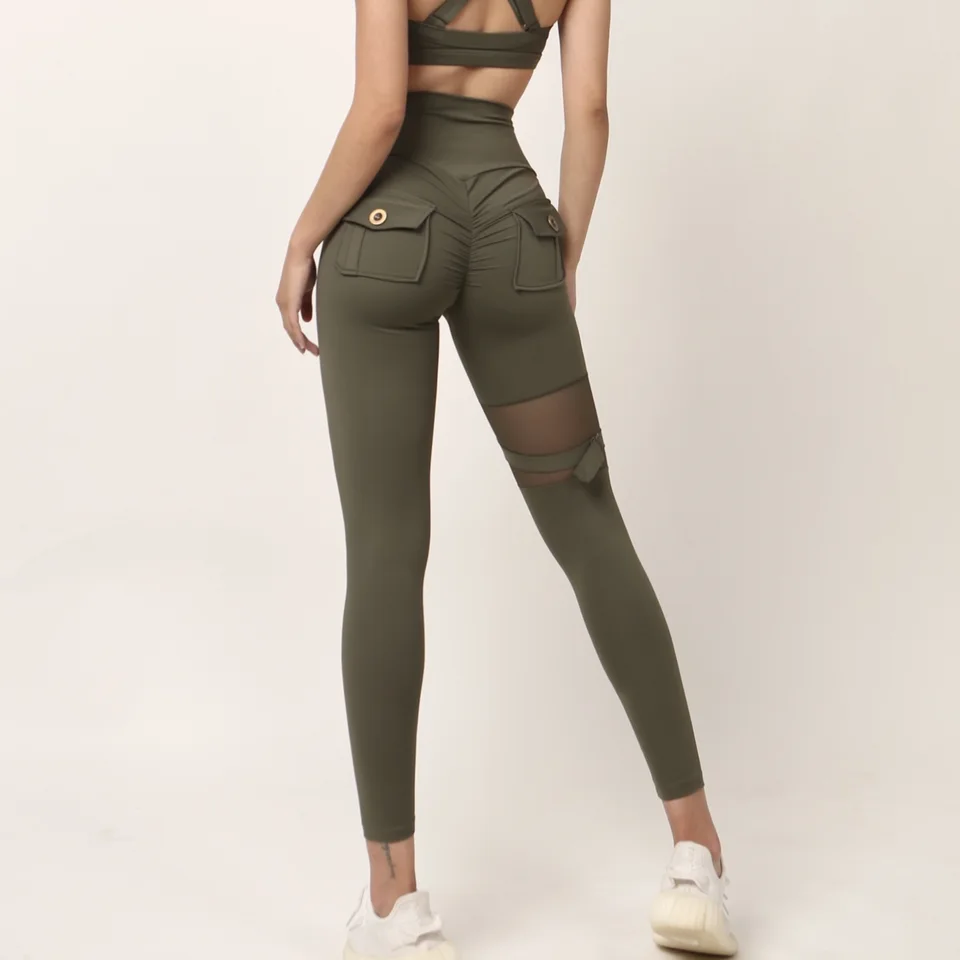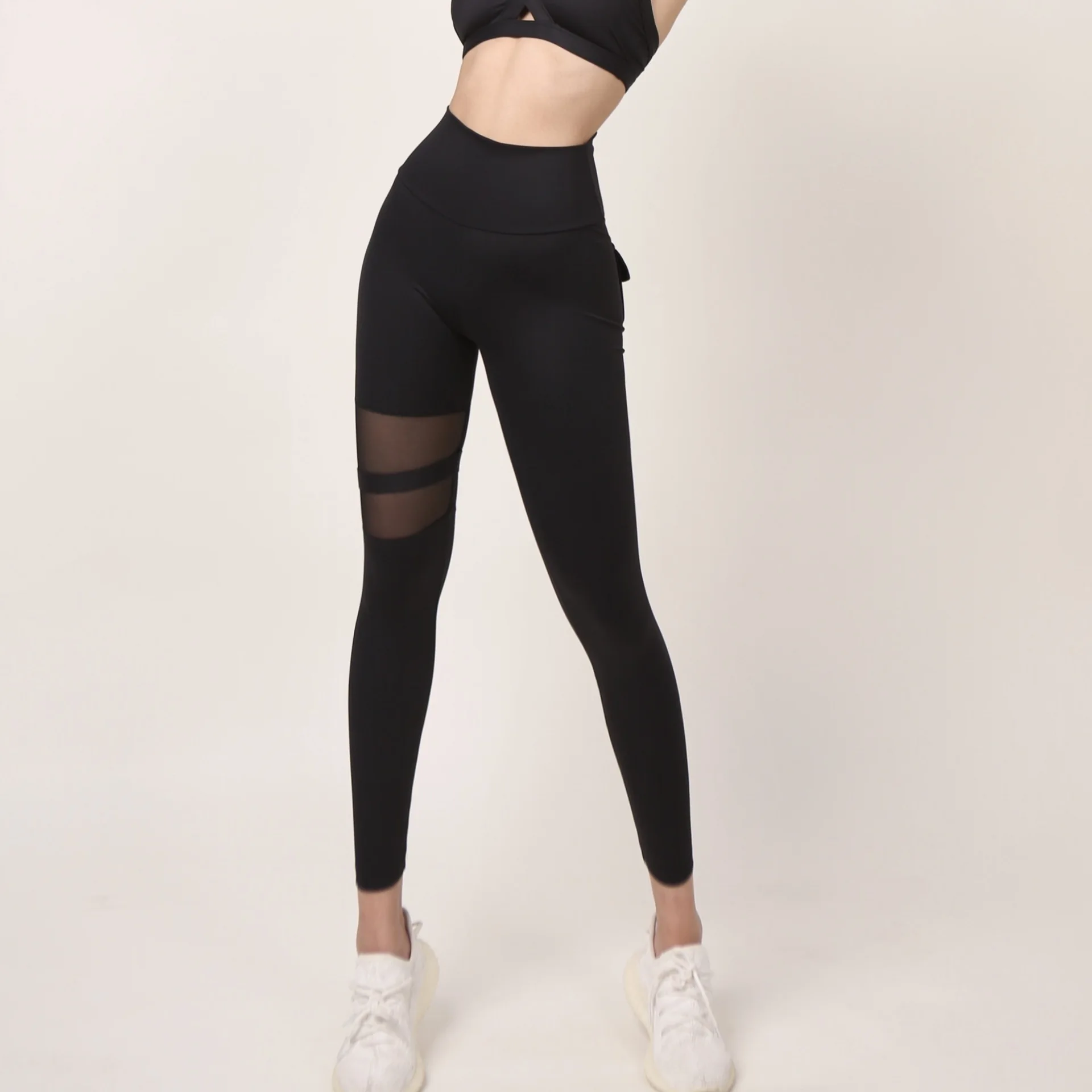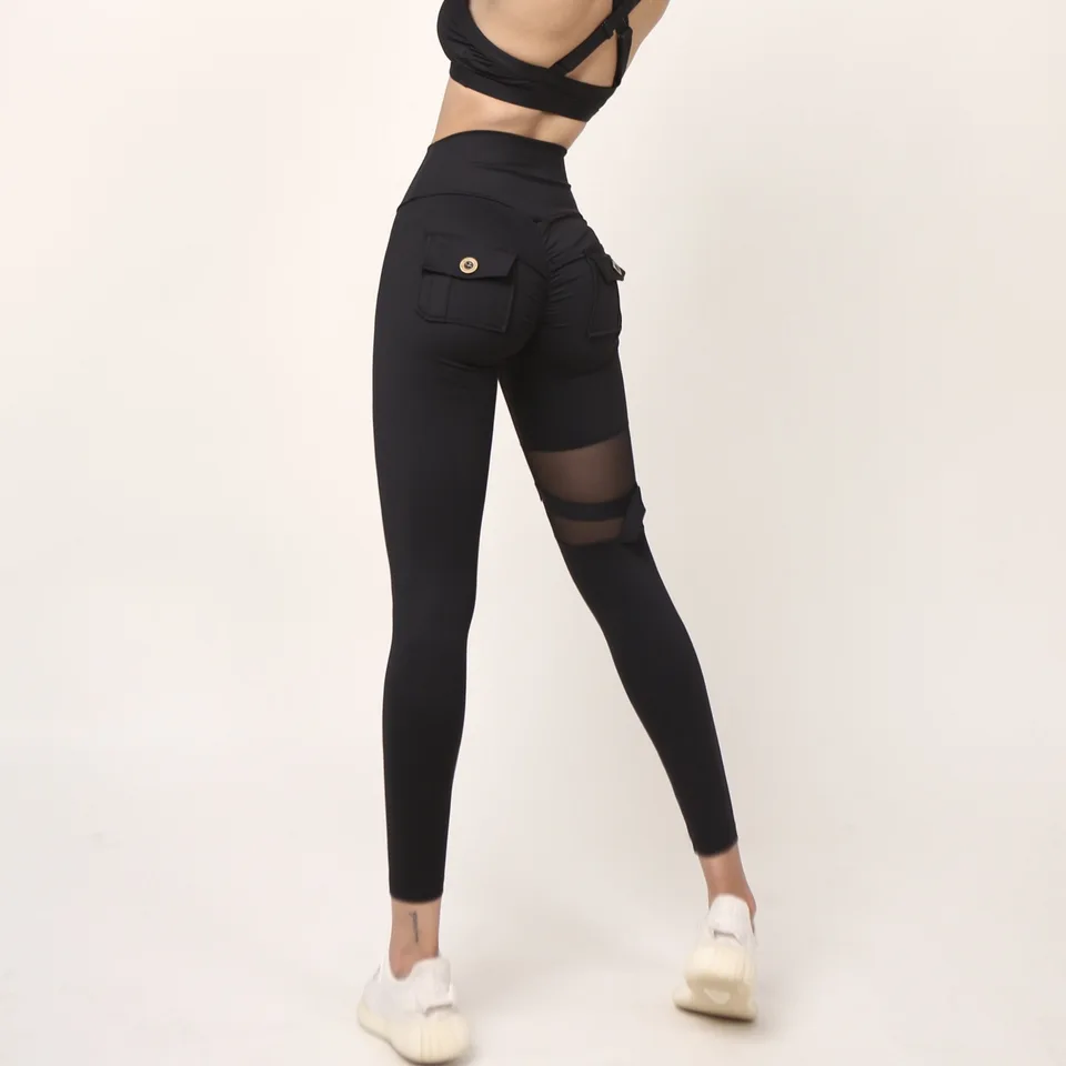 Hip lift fitness yoga trousers elastic tight sports high waist running outside mesh stitching sexy