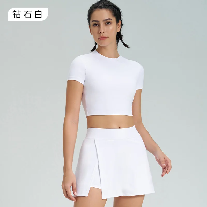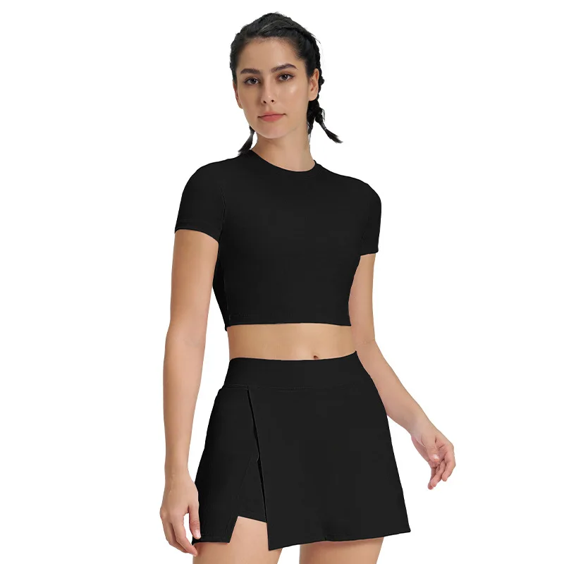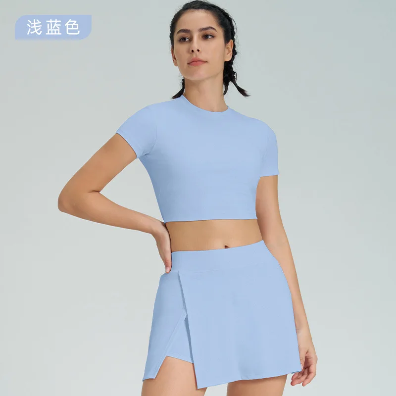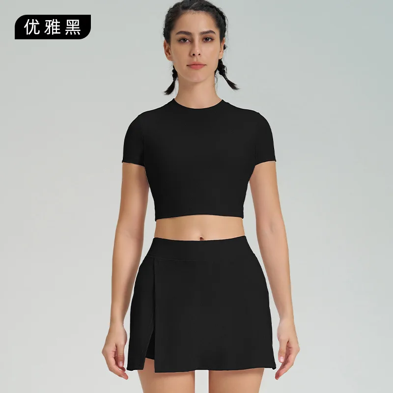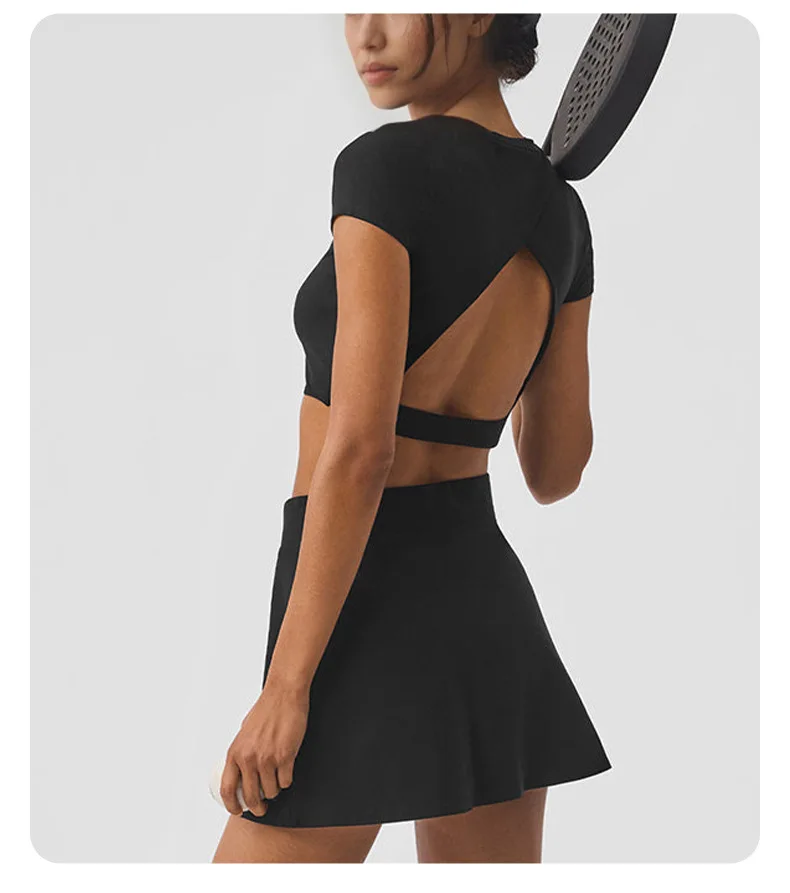 Hollow Out Back Quick-Dry Tennis Yoga Skirt A-Line Silhouette with Built-in Bra Pad Women's Fitness Training Set Gym Set Women