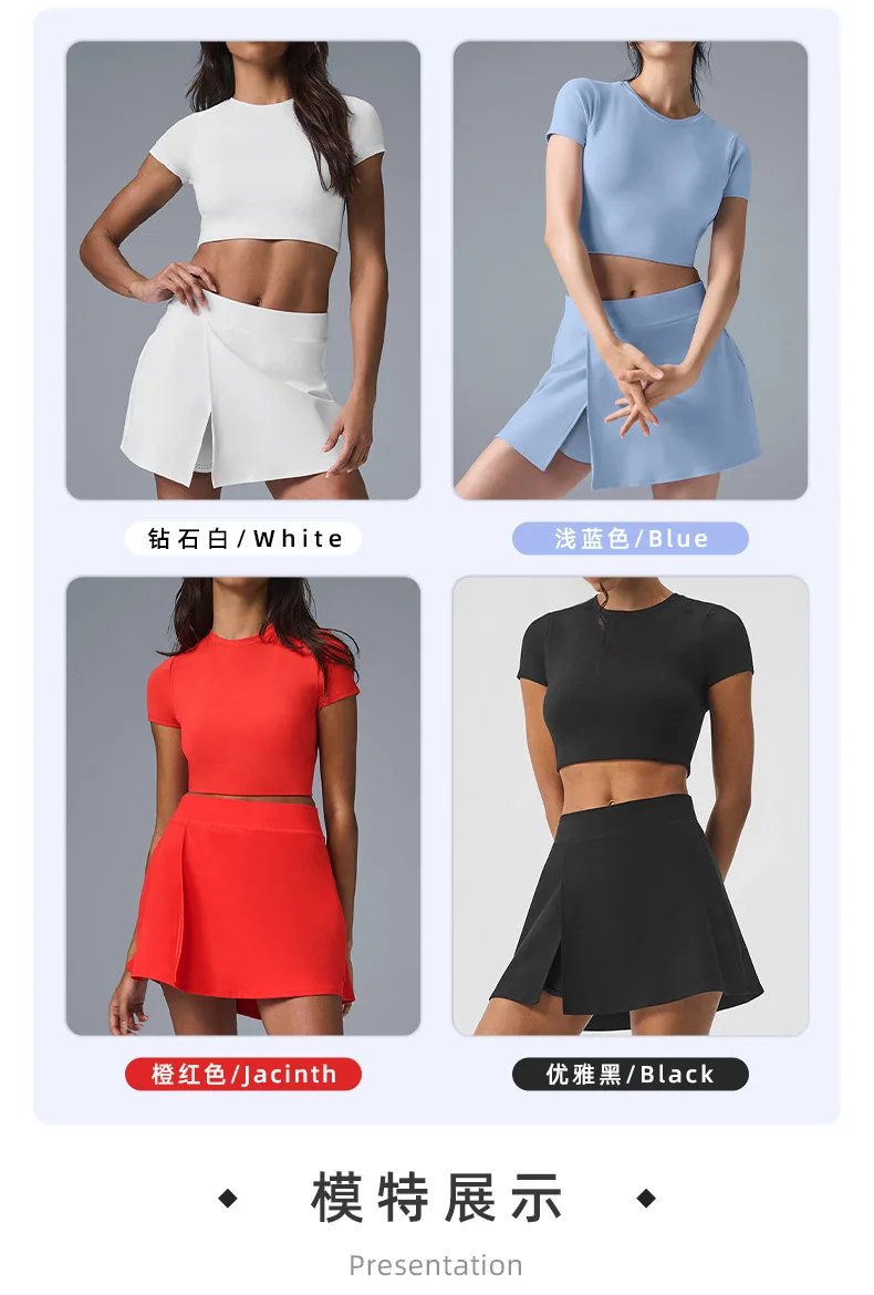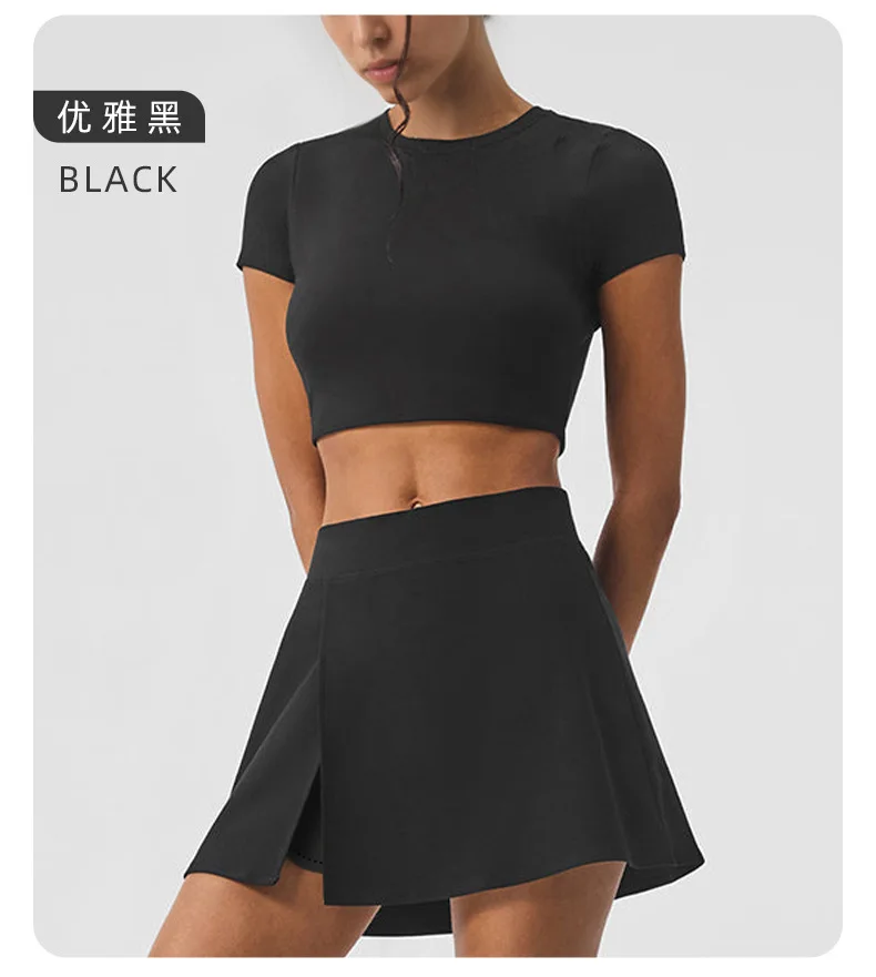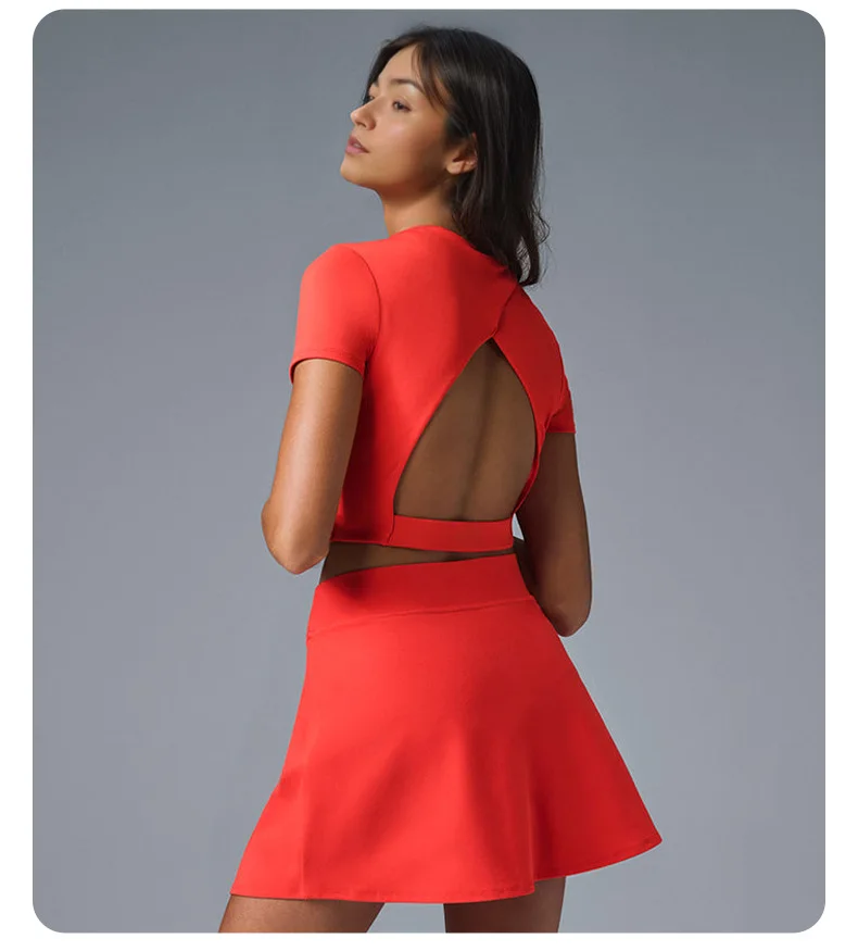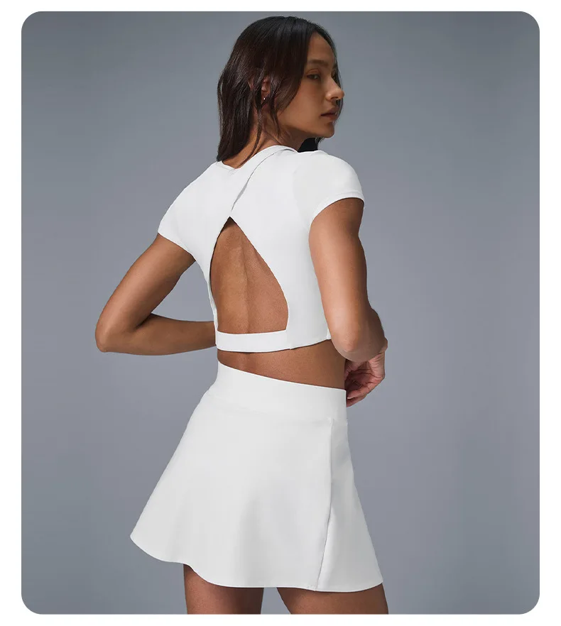 • Hollow Out Back Quick-Dry Tennis Yoga Skirt A-Line Silhouette with Built-in Bra Pad Women's Fitness Training Set Gym Set Women