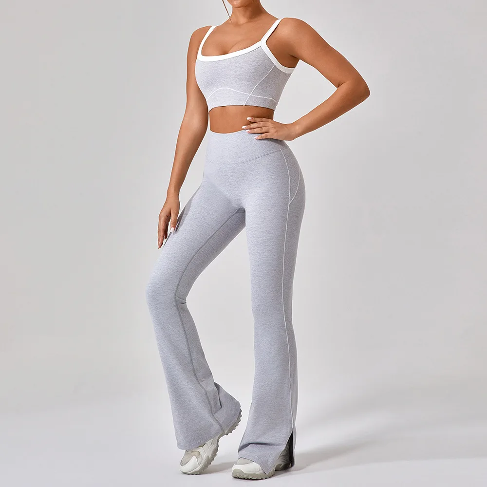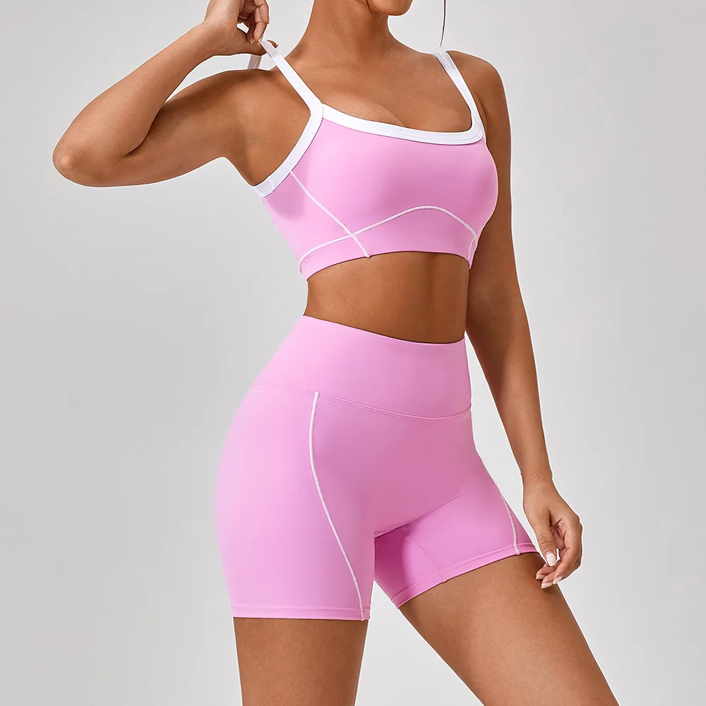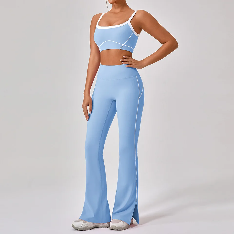 Naked Feel Seamless Sports Bra Set Colorblock Strappy Back High-Waisted Leggings Built-In Padding Yoga & Gym Workout Outfit