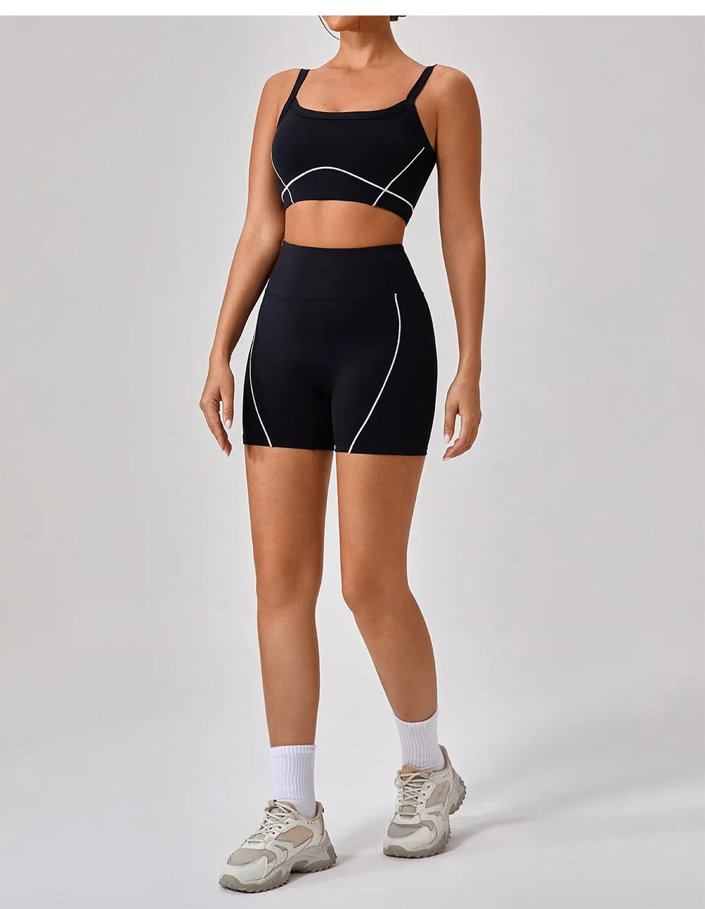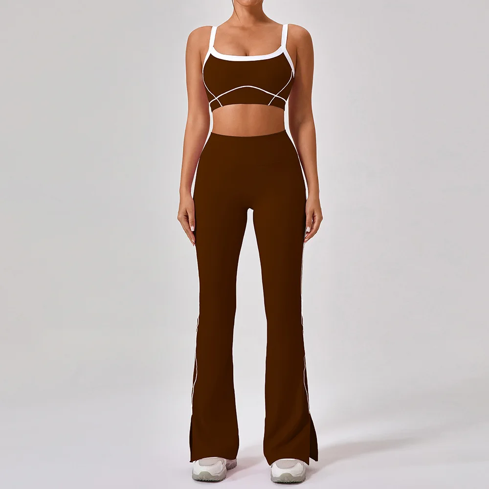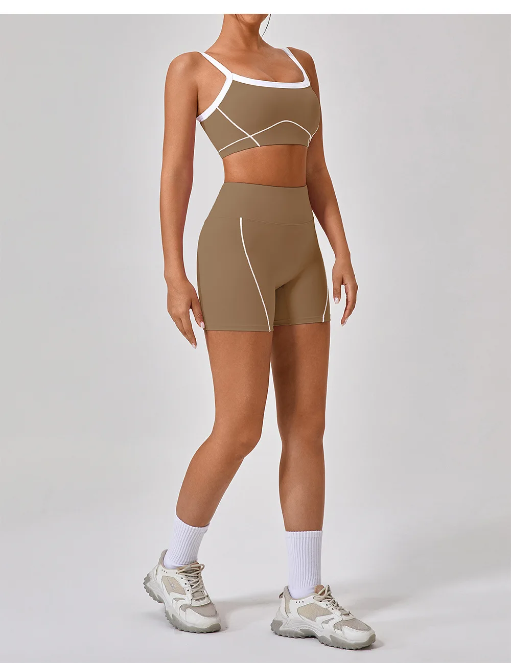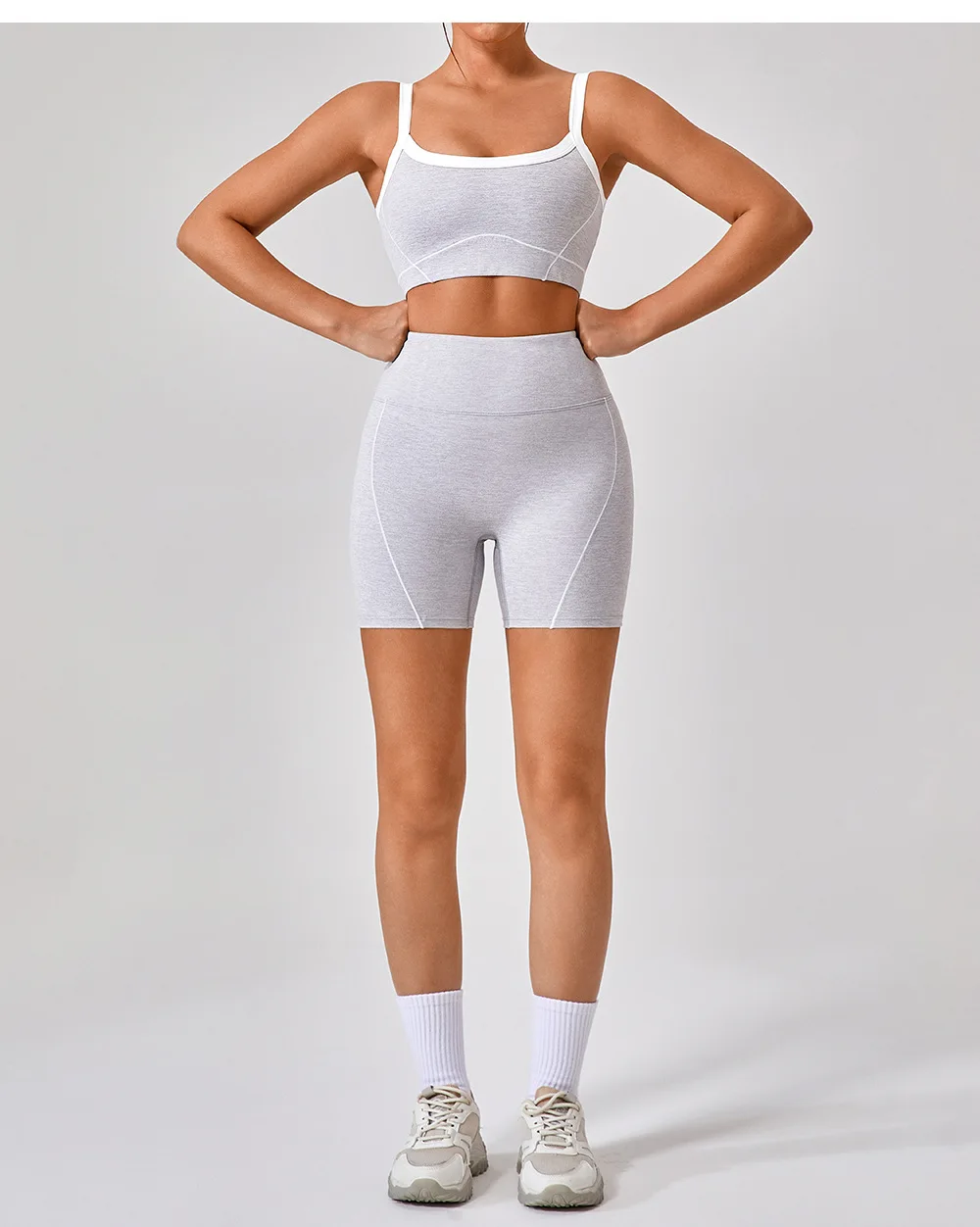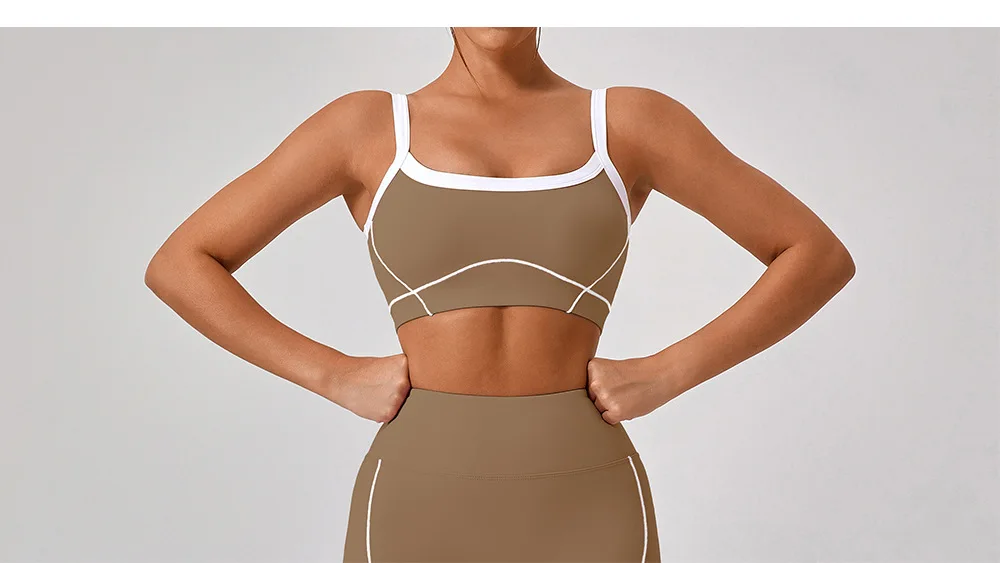 • Naked Feel Seamless Sports Bra Set Colorblock Strappy Back High-Waisted Leggings Built-In Padding Yoga & Gym Workout Outfit