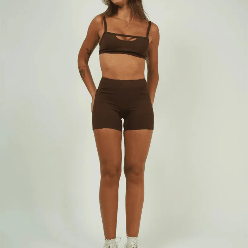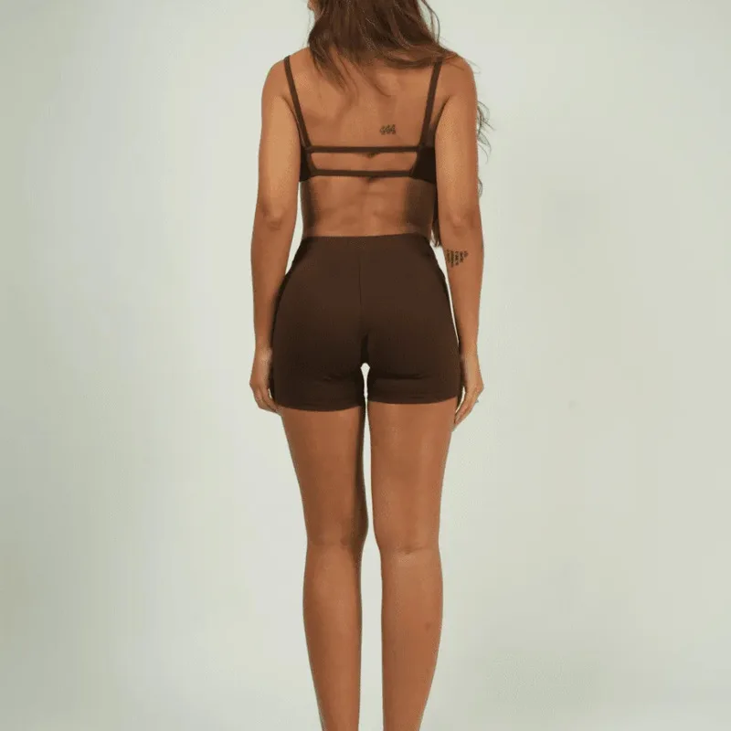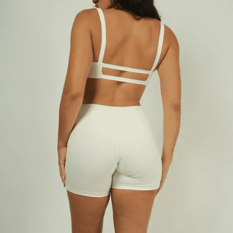 Premium Strappy Anti-Shock Two-Piece Yoga Set Sports Bra & Running Shorts Quick-Dry Breathable Women’s Gym Workout Activewear