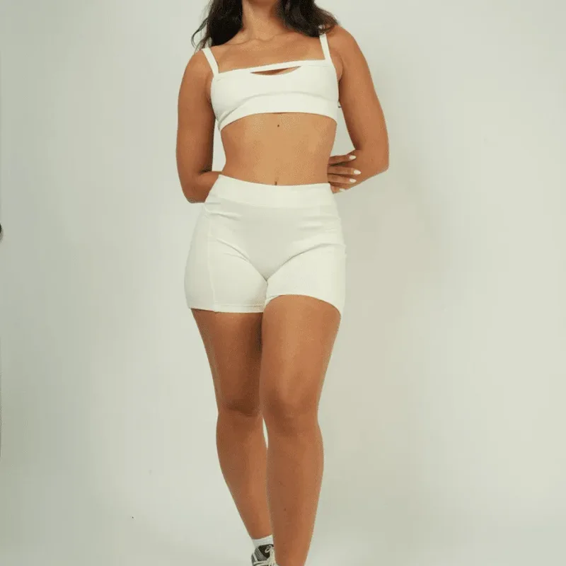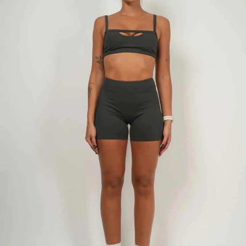 • Premium Strappy Anti-Shock Two-Piece Yoga Set Sports Bra & Running Shorts Quick-Dry Breathable Women’s Gym Workout Activewear