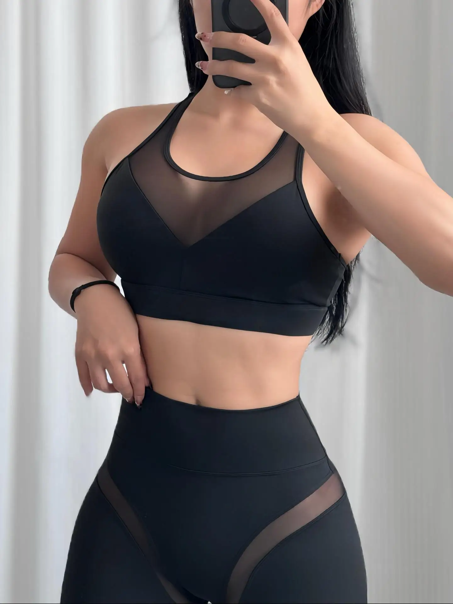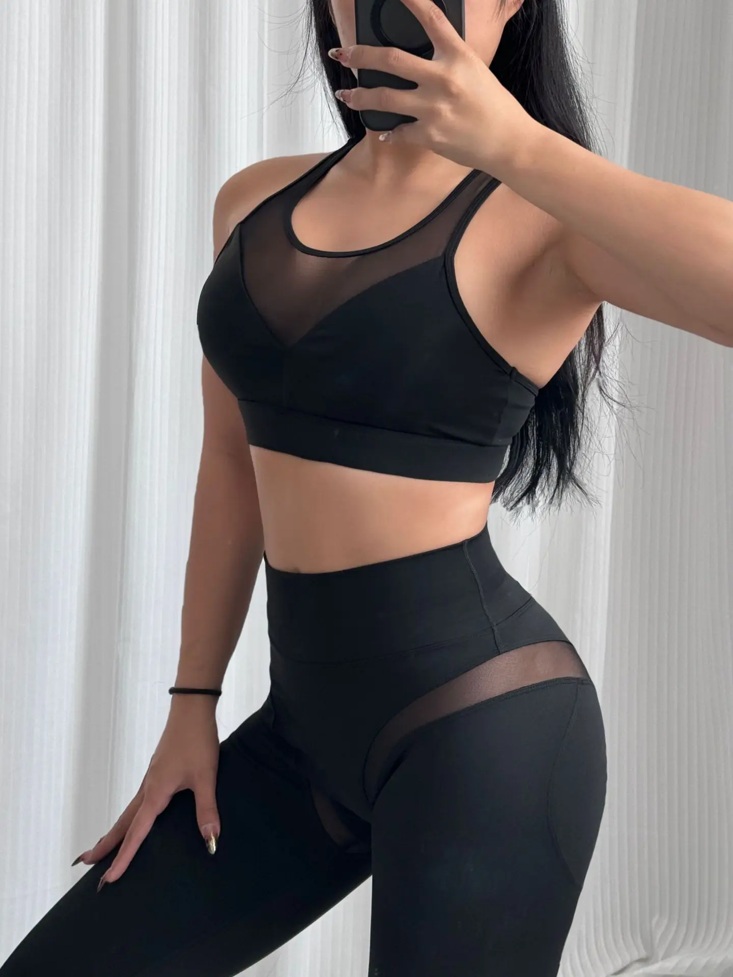 The nude mesh splicing design adds a touch of elegance, making these yoga sets suitable for both fitness and casual wear.