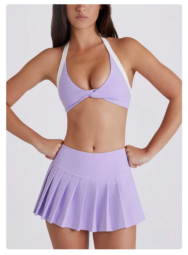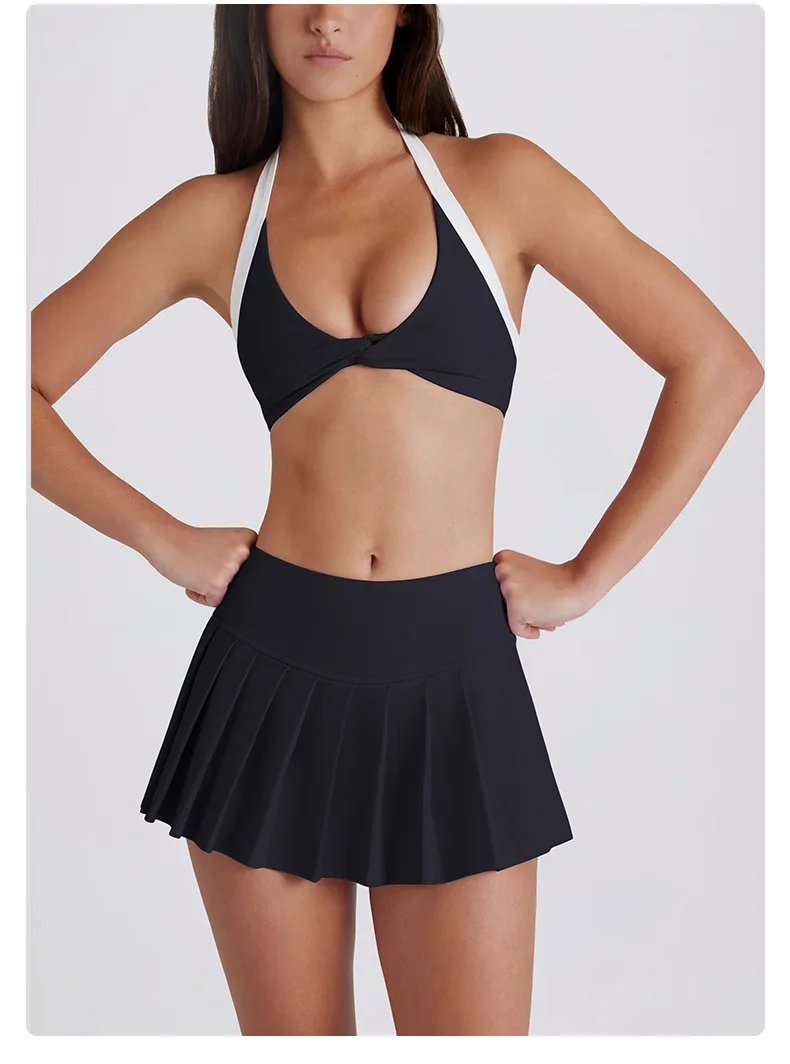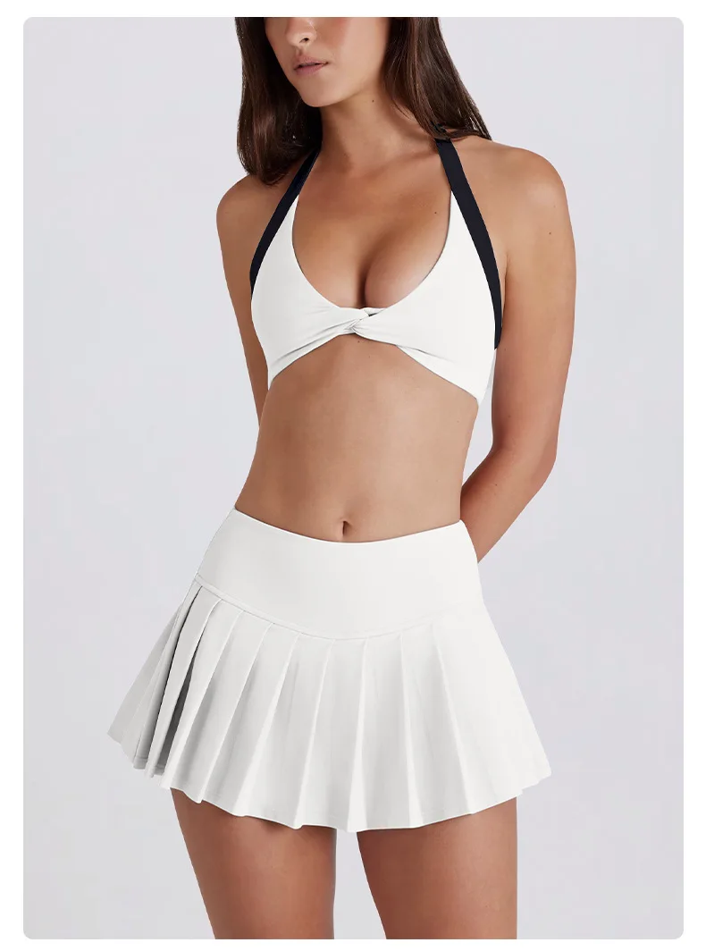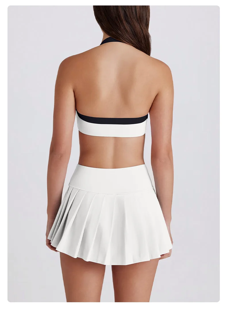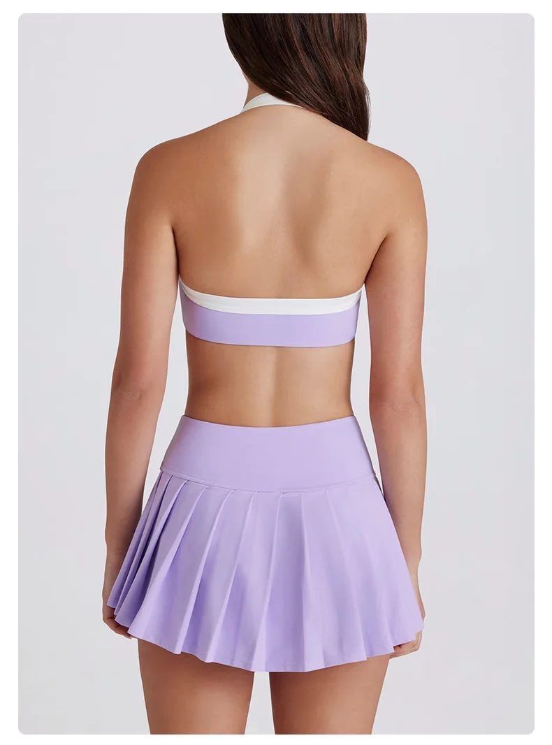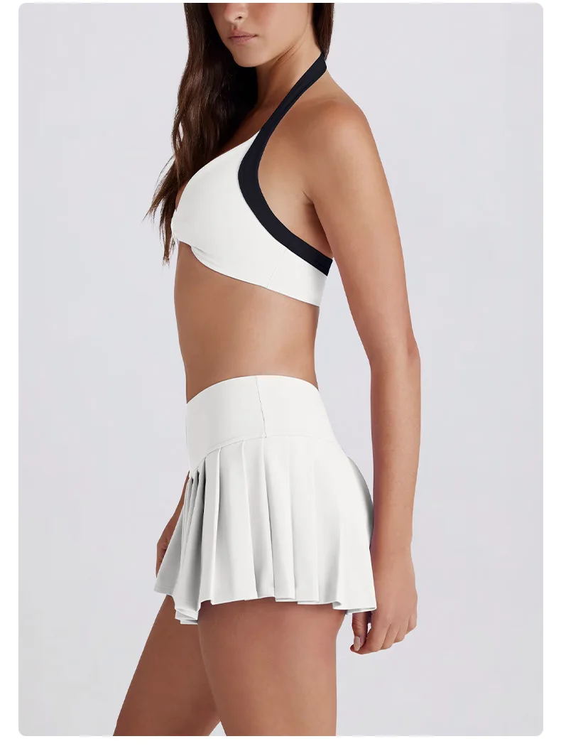 This unique combination of a pleated skirt and leggings offers a stylish and functional look, perfect for both gym sessions and casual outings.