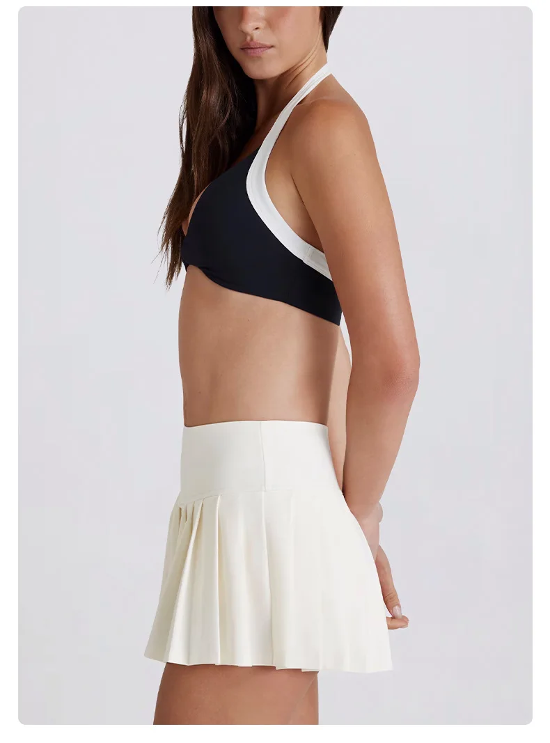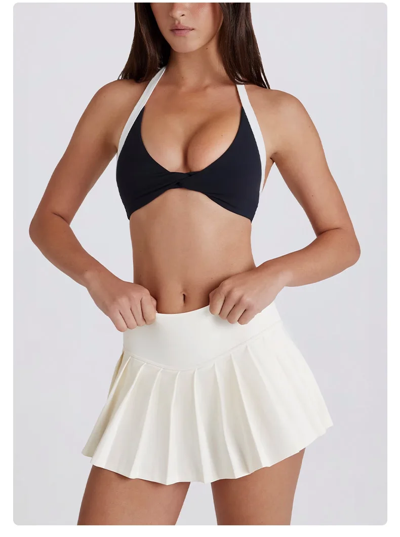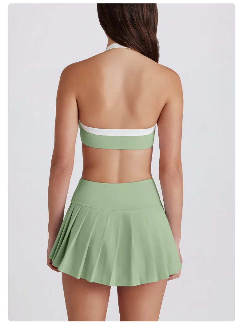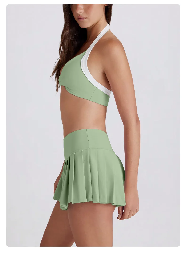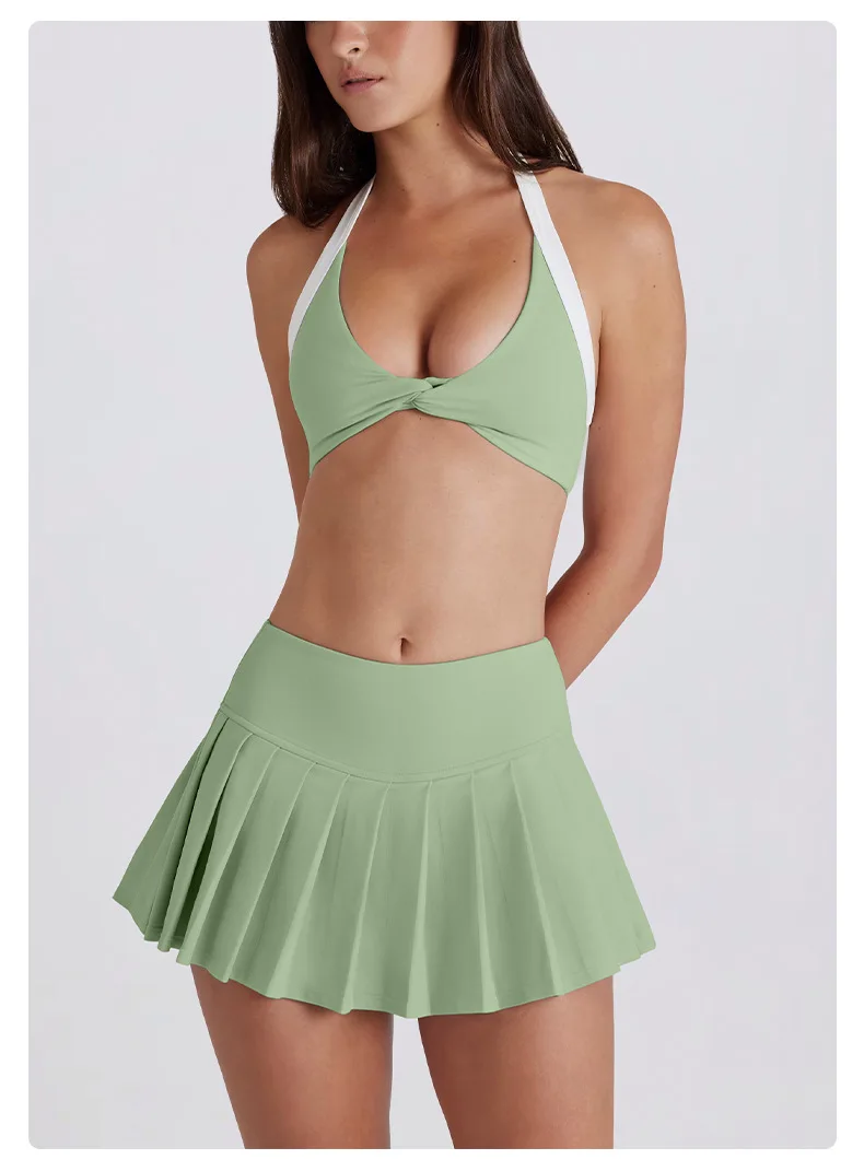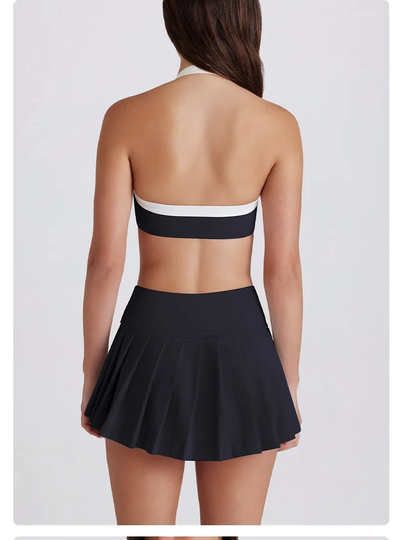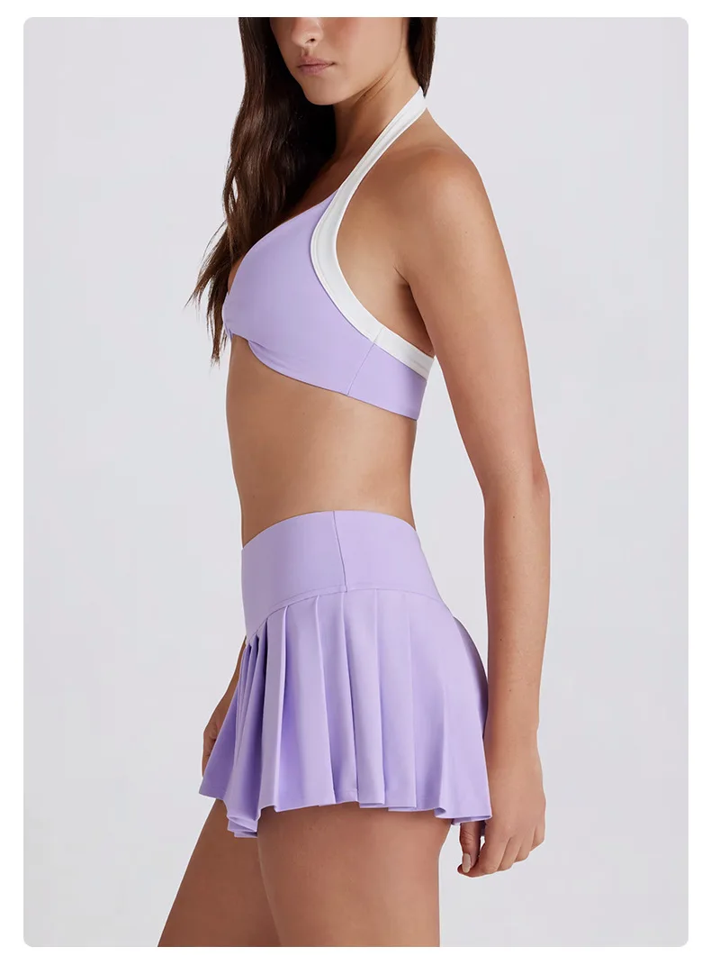 This unique combination of a pleated skirt and leggings offers a stylish and functional look, perfect for both gym sessions and casual outings.