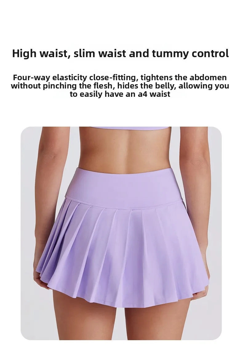 • High Waist Pleated Skirt And Quick-Drying Breathable Leggings Tennis Sports Fitness Set Anti-Light Running Fitness Skirt