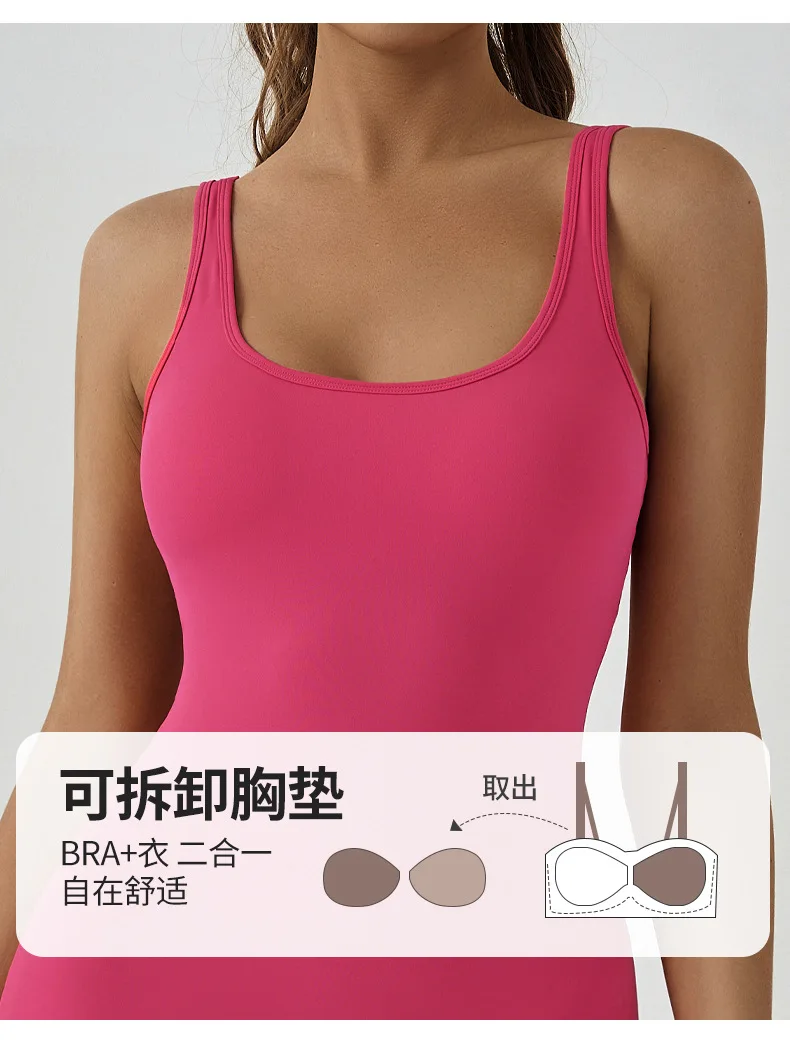 • Women's Dynamic Support Level 2 Sleeveless Yoga Bodysuit #BFR2025 Built-in Padded Pleated Mesh Back Gym Running Suit Virtual Fit