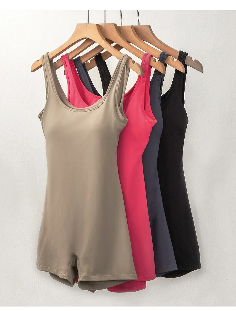 Women's Dynamic Support Level 2 Sleeveless Yoga Bodysuit #BFR2025 Built-in Padded Pleated Mesh Back Gym Running Suit Virtual Fit