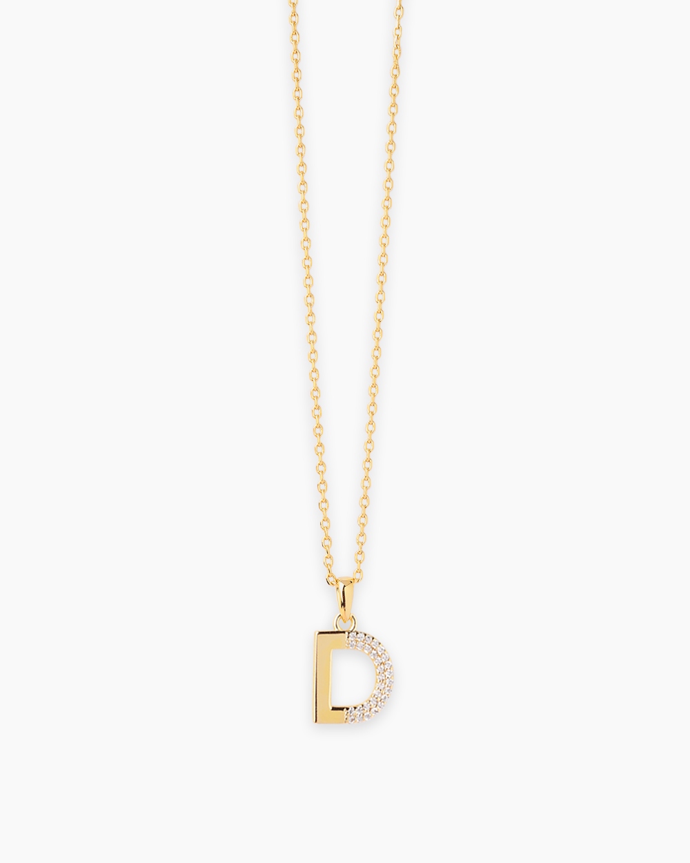 The Letter Gold Necklace is a timeless and elegant piece that allows you to keep your initials or a loved one's name close to your heart. Crafted with a delicate gold chain and a sparkling half-pav茅 letter pendant, this necklace is perfect for everyday wear or special occasions. The minimalist design makes it a versatile and meaningful gift.- +�� shipping